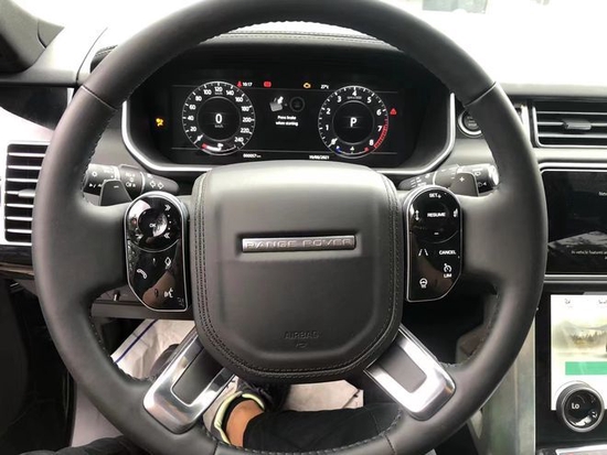 2021款路虎揽胜行政3.0汽油和柴油路虎行政中控台高档木料搭配,卫星导航系统,上下两块DVD超大显示屏,方向盘上分布着按键,与老款相比向盘上的按键也改成了触控的形式,使驾驶者更舒适的操控,充斥着满满的科技感。