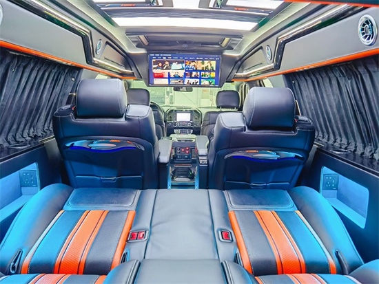 值得一提的是,福特勇猛者后排座椅选装了两个航空座椅,将近7万元的价格说起来还是有些小贵的,不过好在座椅配置还算说得过去,支持各种电动调节而且还带座椅加热功能,就是柔软度比较一般,并没有像想象中的大沙发一样。2021款福特勇猛者第三排座椅腿部空间确实给力,就是头部空间比较局促,毕竟在货斗上安了一排座椅,座椅位置就偏高,所以离车顶近也是正常现象,不过这种设计有一个好处就是视野很棒,可以坐在第三排看到前挡风的视野,有种剧院式的效果。P.S.第三排座椅比第二排软,坐着更舒服。