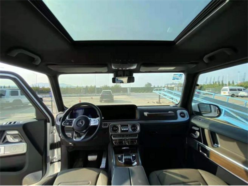 [车型]:2021款奔驰G500[配置]:20寸多辐轮,4.0T,V8,421马力 9速,天窗,前排真皮座椅通风加热按摩,后座椅加热,全液晶仪表,LED日行灯,64色氛围灯,自动空调,柏林之声音响,三把差速锁,前后电眼,雷达测距,并道辅助,脚踏,后视镜电动折叠,多功能方向盘(蓝牙,定速巡航,换挡拨片)AMG外观(AMG运动包围 20寸AMG合金多幅轮毂 运动排气装置 AMG运动方向盘 AMG脚垫)环影