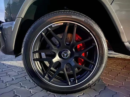 全新的直瀑式进气格栅可以说是家族最新的设计风格,也是在新车外观造型上与奔驰系列产品差异化最明显的地方。其中AMG系列的直瀑式格栅在新时代下的鼻祖可以说是AMGGT (配置|询价) 车型,它内部由12根竖置镀铬饰条组成,同时新车的保险杠进气口相比G 500造型也更具有攻击性。此外,新AMGG 63最大的轮圈尺寸提供22英寸可选,进一步提升了它外观造型的彪悍程度。展车不仅采用了全新的车身涂装,还搭配了红色的轮圈装饰,更加个性。