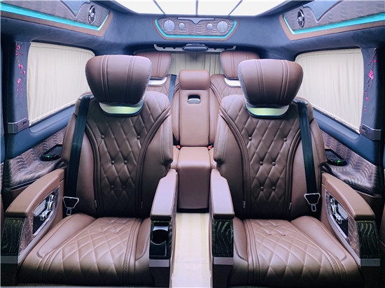 奔驰V250改装高顶隔断7座商务车第二排座椅安装进口首席航空座椅,加热通风按摩功能齐全,最大限度的减缓您的乘车疲惫。奔驰V250改装无高顶无隔断7座商务车八向电动调节:电动头枕,电动腿托,前后电动调节,电动靠背调节。