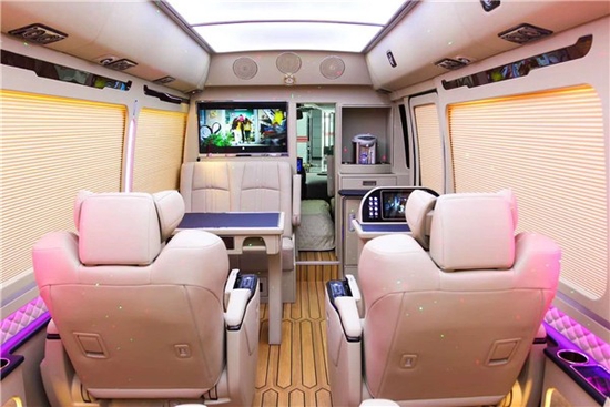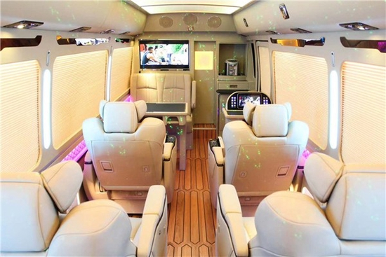 丰田考斯特改装商务车的内饰座椅的数目以及结构的订制,座椅数目从10座到23座不等的计划,因为车内的空间是沟通的,坐位数量越少,咱们在车内就能有更多的举动空间,或者添置更多的为咱们欢迎或办公的装备。地板或地毯,车载办公桌,侧壁装饰,实木装饰,隔邻板,影音系统,顶棚灯饰,无不吐暴露尊贵奢华。
