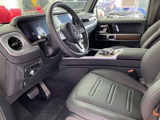 22款奔驰G350柴油内饰方面豪华气息浓厚,仪表盘采用双炮筒式设计,再配合中间的液晶显示屏,粗犷之中又不失精致,宽广的空间, 让人瞬间有一种自由奔放的感觉, 大量的真皮设计以及一些恰到好处的点缀材质,尽显高贵奢华。中控仪表的设计又很有科技感。订车微信:18649226789 阿亮(同微信)
