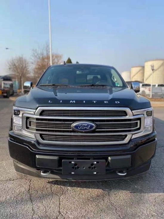 全新福特猛禽F150Raptor皮卡 方方正正的前大灯与前保险杠造就了完美的车头造型与比例进气格栅采用蜂窝状网格设计,并配以雕刻式的福特品牌标识。其前保险杠相当硬朗且保险杠下方配备金属护板,以应对极端路况环境。整体的车架由高强度钢冲压而成,这样不但提高了车身的耐用性,更对乘客在安全方面有了进一步的保证。