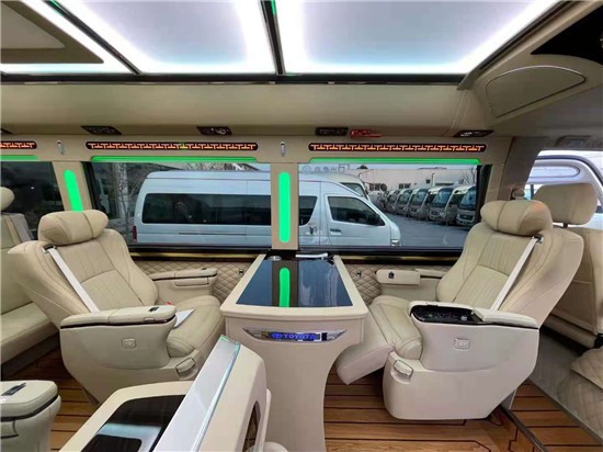 当然,丰田考斯特改装商务车的改装设计不仅仅只是体现您的高贵身份,更是为了给给您的商务旅途带来方便,因此在设计上我们更考虑了您在办公中的所有需求。在车顶处添加LED灯,方便您在旅途中观看书籍或者工作材料。高档办公桌双人汇报新,并且配备了方便的电脑以及手机充电接口,方便而又安全。