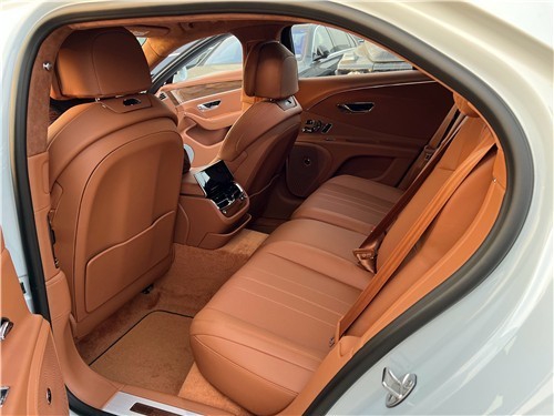 来到车内,其实从拉开门的一瞬间你就能感受到飞驰奢华的用料以及优异的工艺水准。飞驰的中控台造型更偏复古,而用料则是这台车最大的亮点。中控台大面积的胡桃木饰板仿佛玉石一般润泽,让人非常舒心。三幅式方向盘由胡桃木与真皮组成,握感相当棒。