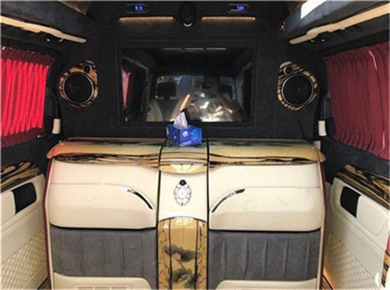 进入后舱,立刻就会被它的豪华绚丽而征服,驾驶舱与后舱是分隔设计的,形成两个独立的空间。中间由一台超大液晶升降电视(32寸)及柚木多功能吧台及日本健伍音响组成,整车环保真皮包裹,金网花地板铺设,咨询热线:13161506669小范儿吧台与座椅完美结合,下方是隐藏饰酒柜,合理利用了车内的空间,使您接待贵宾不失格调。奔驰Vclass-美杜莎房车内饰,则是由意大利宝格丽珠宝设计师亲自指导,借鉴宝格丽SERPENTI系列主题,以925 银为底材,精细的镀以18K玫瑰金和18K白金双色材质,大量植入了珠宝元素。前吧台座椅中心镶嵌了英国进口钟表,表盘周围镶嵌588颗锆石,散发出来的光芒引人注目,极具奢华感。
