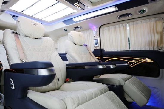 2022款奔驰威霆改装高顶商务,两个独立的座椅采用欧洲进口Nappa小牛皮手工缝制,严格按照人体工程学设计,内置座椅加热、通风、按摩、四段八向调节、180°旋转、座椅记忆、腿拖支撑,乘坐感受非常舒适,宽大的座椅就像是自驾的沙发上一样2022款奔驰威霆改装,国六奔驰威霆高顶7座商务,奔驰威霆改装高顶七座 车长5.37米。