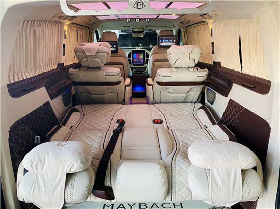内饰通过改装实现了满足商务接待、洽谈、出游等各种出行需求。全车真皮包覆质感十足。然后它的第二排的座椅也达到了飞机头等舱的标准,手感细腻的进口纯手工真皮包裹,配有精致缜密的缝线,细节之处随处可见。 小范儿不仅看上去更有档次感,而且在您坐上去之后就能感觉到它完美的衬托感!还具有多向电动调节等功能!它不仅可以让乘客更好的休息,也还可以和后排的人一起下棋或者打麻将,因为这个座椅可以旋转到后方,这样就可以轻松的娱乐了,座椅具备了通风和加热、按摩、记忆功能,整车配置强大,说不出一个不好的理由。