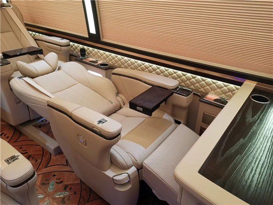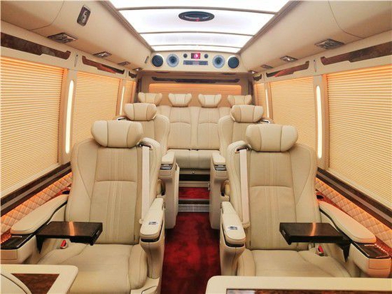 丰田考斯特改装商务车除了高级版的之外还有特别行政班豪华版以及尊贵白金版的设计,丰田考斯特特别行政版车身颜色为香槟金色4.0LV6的发动机型号设计。豪华版的丰田考斯特是米黄金色, 北京华通丰业丰田考斯特所有车型中最受欢迎的一款,米黄金色的丰田考斯特自带尊贵气质,再加上外观上的一些装饰更可以让丰田考斯特展现自己的独特。北京华通丰业豪华版米黄金色的丰田考斯特和高级版在外观的主要区别除了颜色不同之外还因为豪华版的丰田考斯特采用的是密封性玻璃航空外摆门,而高级版的是推拉玻璃折叠门。