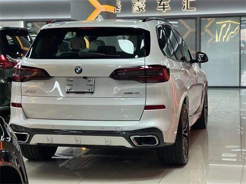 22款宝马X5尾部造型立体感更强,采用悬浮式车顶设计,还配备了鲨鱼鳍天线,尾灯采用双红色灯带设计,采用双边单出排气管设计,后保险杠采用白色包裹,设计感更好。