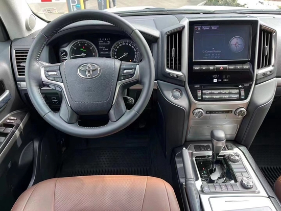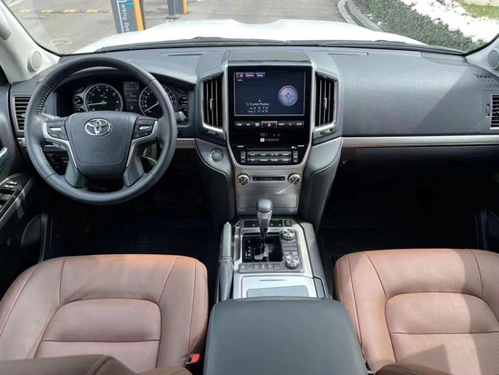 22款酷路泽5700,白外棕内,现车随时提车 国六b11,全国上牌, 配置:12气囊,前后电眼;三点式安全带,并道,尾翼,电动折叠后视镜,自动大灯,LED雾灯,LED日间行车灯,LED刹车灯,车身同色门把手,前镀铬格栅,行李架,18寸铝合金轮毂;黑踏板,环影,天窗,电尾门,KDSS动态平衡系统,底挂备胎,智能卡;四驱自动空调,前座椅通风加热,二排座椅加热;一键启动;冰箱,倒影;无线充电;4.2寸仪表盘;JBL音响;后娱;大屏;电动调节方向盘;坦克掉头