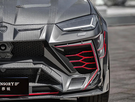 单看MANSORY迈莎锐UrusVenatus车头身体便会不由自主“颤栗”,不是因为恐惧而是震撼所趋。碳纤维虽然也是黑色但却与原厂黑漆形成了鲜明的对比,不论是引擎机盖带分流器、前唇、前保风刀、进气孔薄片、格栅框......均前所未有的层次分明。