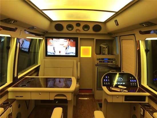 除了座椅,改装还可以从内饰的办公桌,秘书席,车内音响影音设备,地毯的改装,窗帘的设计等等,丰田考斯特改装商务车在内饰的设计上追求贴心的设计,用最精致的改装打造你的高级私人订制。丰田考斯特在改装的优势绝不是其他任何小型轿车所能相较的。而改装的私人订制也是丰田考斯特现在能够受到市场欢迎的重要原因。