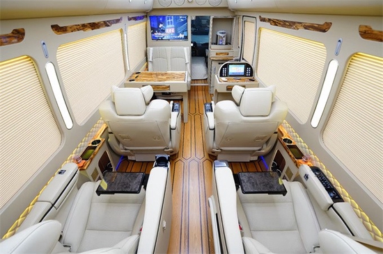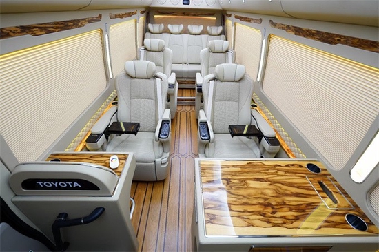 丰田的考斯特可以在隔断的中间增加电动门,便当来回的互换与沟通。在驾驶舱与乘客车厢中间增加隔断不单仅是为了车内构造的雅观。丰田的考斯特办公桌可以选择真皮包裹桃木的商务办公桌,也可以选择带有升降电视的豪华办公桌,再或是定制的智能办公桌。丰田的考斯特选用了高端音响系统,按照家庭影院音响系统设计,专注于杜绝噪音和消除震动构筑出合适高保真音响系统的完美环境,支持多声道环绕声效果,给乘客带来视觉与听觉十分冲击的效果。丰田的考斯特在内饰地毯的设计上丰田考斯特改装商务车也有很多不同的方案设计蓝色的地毯设计大气端庄。红色的全车地毯增加彰显独特和尊贵,而车内的设计上还可以选用豪华的游艇木地毯,大气大的设计展现内饰的独特和尊贵。