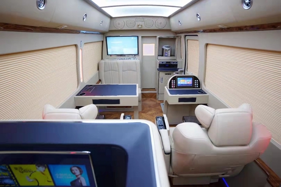 内饰设计上有华通丰业很多独特的想法,窗帘的设计可以和地毯的设计相互结合,豪华的布艺窗帘和端庄的阻燃式地毯相互结合打造出内饰独特的尊贵。华通丰业而百褶窗帘和内饰的游艇木地毯相结合却可以显示出一种独特的大气之感。增加车载冰箱,为我们的旅行提供更多的便捷,华通丰业车内的灯光设计更可以营造出独特的气氛,航空顶灯,LED大灯以及座位处的灯光的谁都可以根据我们自己的需要进行设计。