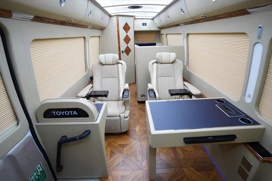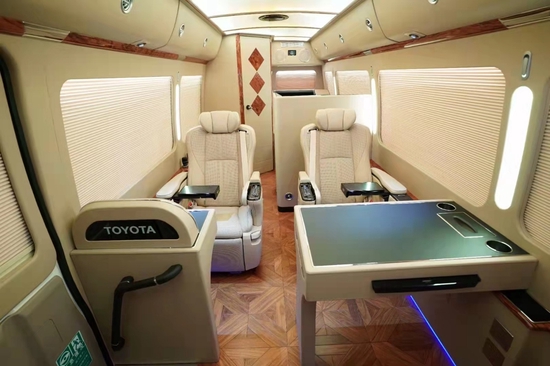 丰田考斯特华通丰业除了可以选择座椅的数量,同样也可以选择座椅的材质。豪华真皮座椅,可旋转的首长席座椅,以及原装进口的埃尔法座椅华通丰业,改装都可以满足我们对于商务车的需要。舒适的座椅再配备上高档的办公桌,办公桌加桃木和真皮的装饰,充分满足了商务办公的需要,华通丰业更加能够提高档次感。
