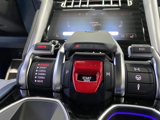 21款全新兰博基尼Tamburo驾驶动态选择器位于中控台,可对全车的动态系统进行控制,根据驾驶者偏好和路面状况切换驾驶动态:STRADA(道路)、SPORT(运动)和CORSA (赛道)模式,以及新增设的NEVE(雪地)模式。同时,可选装两种越野模式:TERRA(越野)和SABBIA(沙地)。 这是兰博基尼第一款搭载涡轮增压发动机的车型。