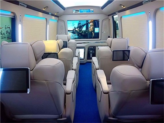 丰田考斯特加装商务车改装前后之后判若云端的设计更加体现在内饰灯光的设计上。丰田考斯特改装商务车原车出厂之时内饰颜色单一,宽敞的内饰空间也需要更加高端的照明。华通丰业丰田考斯特改装商务车,对于照明的设计上,我们可以选在车顶安装LED大灯,满足我们照明的需要。同样也可以安装彩色航空顶灯,营造车内不同的氛围,也是的丰田考斯特在内饰的环境上展现出与众不同的色彩。