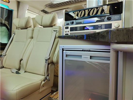 丰田考斯特改装商务车,在内饰的其他设计上也有着许多精彩之处。更加考虑考斯特作为商务车的实用性大的考虑。丰田考斯特改装商务车内配高档办公桌椅,秘书席,方便我们在旅行中的紧急办公或者汇报需要。丰田考斯特改装商务车,内配备车载冰箱,为我们的旅途提供更加舒适的乘车环境。丰田考斯特改装商务车在驾驶席与乘客席之间增加隔断,为驾驶人员营造专心安静的驾驶环境,同样也为乘车人员,缓解旅途的紧张气氛,保障行车的安全舒适。