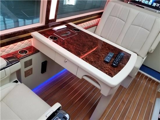 彩色的灯光可以萦绕在车顶上,打造一片旅行中的星空,乘坐在这样的车里,突然就会忘记自己是在旅行,忘记自己的压力和疲劳,再看脚下,通道两旁闪烁着淡蓝色的灯光,浪漫的氛围,温馨的气氛,又怎能契而舍之呢, 改装打破传统的中巴车的限制,用改装打造颜值的巅峰,不管经历多久,丰田考斯特改装都会因为它独特的魅力立足于市场。