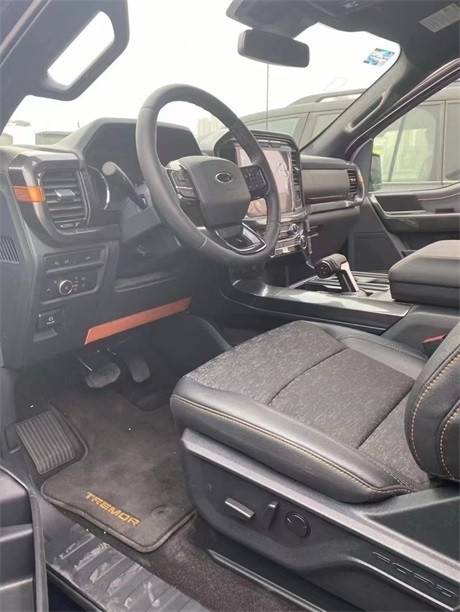 21款福特F150内饰采用独特的中控台和门饰板面漆和真皮包裹的方向盘。中控台部分辅以银色饰板装饰,六指针仪表盘的设计有些后工业时代的复古风格。采用带电冷热功能的可记忆式皮革座椅,头枕四向可调,搭配铝饰条和黑色钢琴烤漆内饰可电动升降的后窗带隔板和电热除霜功能。宽敞的空间可以让成员舒服的伸开双腿、展开双臂。福特F150猛禽的后门宽度明显比前门窄的多,但内部空间却依然满足需求,后门前端安装着安全带,可以保证车内乘员的安全。