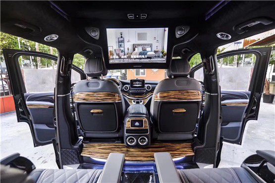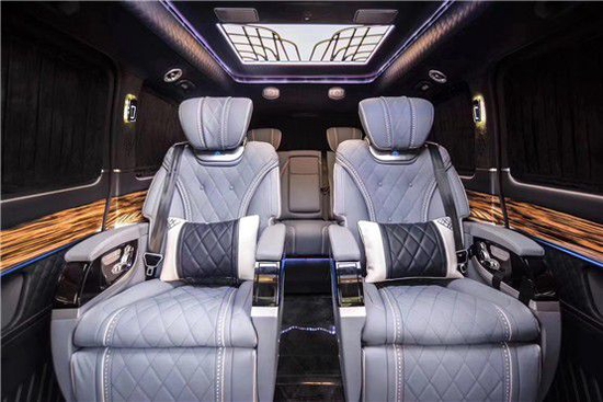 奔驰V260L定制VS680,有几种风格可以选?VS680凭借行政座椅,前排乘客侧的后排乘客即使在长途行车中也能够完全放松。仅需按下一个按钮,便可将座椅设置到舒适的角度,最大倾斜角度为 43.5 度。一个附加的伸出式腿部支撑进一步增强了舒适性。配备电动可伸出式脚踏板时,能够创造出一个适合睡眠的舒适座椅角度。当座椅靠背倾斜度较大时,可以通过一个气垫增强乘客的安全保护效果。发生正面碰撞危险时,它可在座垫下展开,从而防止乘客从安全带下方滑出(潜滑)。