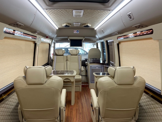 丰田考斯特改装在外观的设计主要体现在细节的装饰上,为车身添加彩色中线,增加车身的层次以及灵动感,不会让中巴车型的考斯特显得过于笨拙。在车轮的装饰上,丰田考斯特改装商务车增加轮毂罩,既能够保障行车安全又在一定程度上增加了车身的美观。车头前的镀铬设置以及在车门处增加的自动阶梯,着一些的设计都在细微之处体现了丰田考斯特改装商务车的独特之处。