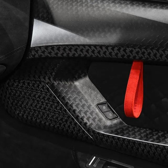 锻造碳细节展示2:采用特殊编织纹的48k-B锻造碳拥有无与伦比的吸睛指数,倘若驶入超跑俱乐部,原厂同款Aventador EVO必然相形见绌!