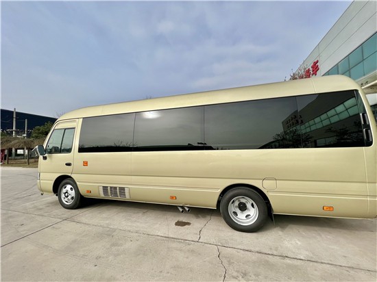 丰田考斯特改装16座改装商务车,从外观上来说,丰田考斯特16座商务车从外观的设计上来说,丰田考斯特车身长7.005米,身宽度为2.040米,车身高度为2.774米,高大宽敞的车身为乘驾人员提供更加舒适的乘坐空间。丰田考斯特16座豪华版车身颜色为米黄金属色,丰田考斯特改装16座商务车在外观的设计上也增加了一些独特的设计,在车头的设计上,丰田考斯特改装16座商务车增加了镀铬的设计,于细节之处增加车身设计的美观。