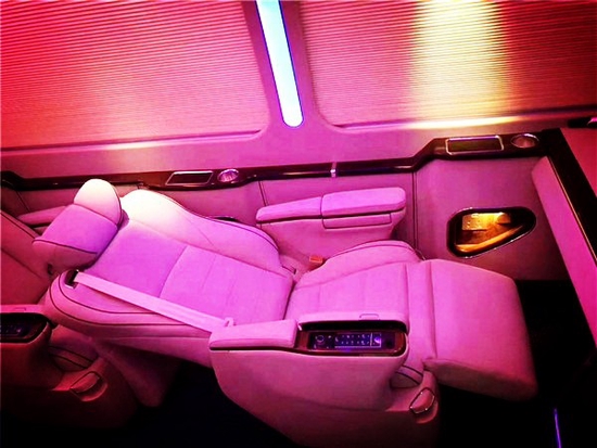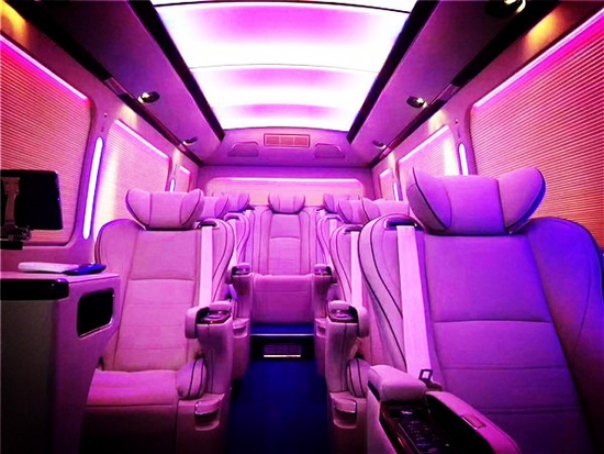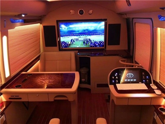 丰田考斯特全新配备高档意大利真皮航空座椅,并配置了电动脚托、电动靠背。让乘客享受头等舱般的享受。航空座椅前配备了真皮办公桌,桌面配以多媒体数据转换接盒,实现多功能的移动办公与会议展示,细节方面:丰田考斯特增加了隐私玻璃以及外观镀铬装饰和镀金标识,庄重感与豪华感油然而生。