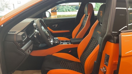 21款兰博基尼URUS (配置|询价) 4.0T V8,颜色:珍珠橙/黑橙,配置:哑光黑排气管,越野驾驶模式,多功能方向盘,全景天窗,后排座椅加热,23寸亮黑色轮毂,平视显示器,BO音响,头枕兰博基尼盾徽,红色刹车卡钳,高速辅助,蓄电池维护器,前座椅通风按摩。
