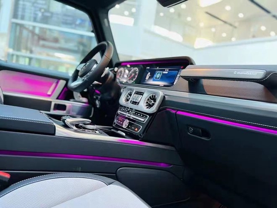 22款奔驰G350内饰设计:档次、质感和科技配置都明显提升全新奔驰G级的内饰相比老款有了明显的提升,采用了奔驰最新的双屏幕式设计,全液晶仪表盘和中控台屏幕都达到12.3英寸。同时内饰质感和工艺都有了很大的进步。