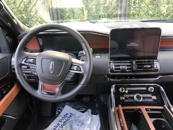 21款林肯领航员新款三幅式多功能方向盘带加热功能,真皮包裹方向盘兼具温润触感与典雅质感,三幅式设计令操控更加得心应手,在尊崇气息之上添一分动感魅力。真皮部分可在短时间内加热,即便在寒冷的天气状况下,也能保持对温度的掌控感。内饰豪华气派,做工精细。车内大量皮质和实木材覆盖,让人即刻尊享定制体验。新款林肯领航员采用12英寸全液晶的仪表盘,悬浮式显示屏,科技感十足。