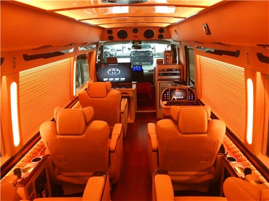 车内静谧的空间,得益于COASTER柯斯达 (配置|询价)针对发动机及车身的多项有效的降噪隔音措施,新款尼桑碧莲总裁版是一款专为企业高端接待推出的车型,从任何角度去考量这款车都没有“破绽”可言,精品源于细节和质量。新款尼桑碧莲是历史选中的车型,传承下来的车型,其发动机性能可口碑是好的见证,改装后的新款尼桑碧莲在灯光方面做了巨大的改善,全车都使用LED灯光,地毯灯,阅读灯,立柱等,航空顶灯,台阶灯,窗帘灯等灯光效果的搭配让新款尼桑碧莲呈现给乘客更加绚丽的色彩。