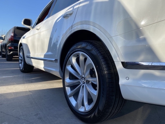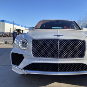 2021款宾利添越前保险杠轮廓进行了全新的设计,两侧的导流孔面积更大,为车头增加了一些运动元素。车身侧面的线条十分修长,硬朗的腰线十分的具有力量感。中网面积相较于老款更大,角度更为直立,看起来更加大气。