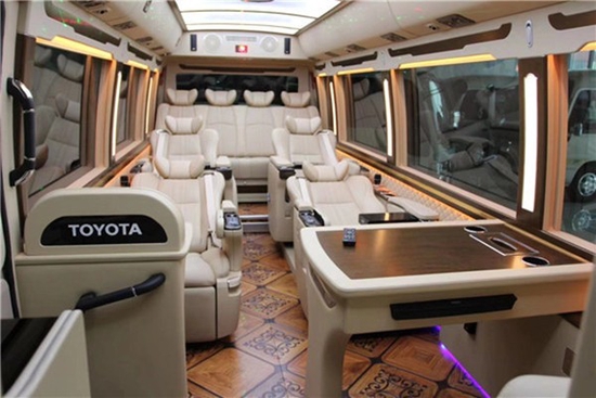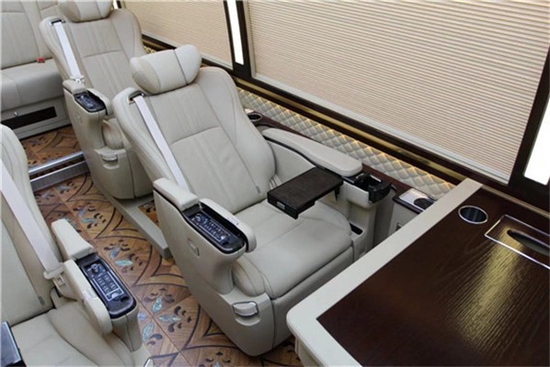 丰田考斯特特车型空间较适合,此一般商务车大,比大巴车又小。装上十人座正好适合领导、助手、翻译、保镖、记者随行,有利于沟通和提高工作效率。