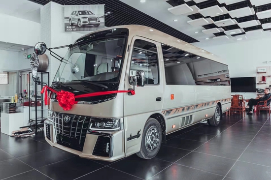 丰田考斯特 (配置|询价)隔断12座红木版 顶级内饰风格。今天给大家带来的是丰田考斯特(配置|询价)12座红木总裁版,丰田考斯特车身长7.004米,身宽度为2.040米,车身高度为2.631米,高大的车身、宽敞的内饰是丰田考斯特可以有不同的设计的前提。丰田考斯特11座红木总裁版在外观的设计上米黄金色的外衣,彩色的车身中线。密封的车身玻璃,再增加车身的防爆隐私玻璃,既能够防止紫外线的辐射,同样也在一定程度上提高行车的安全系数。丰田考斯特改装商务车在外观的设计上追求大方端庄,所以在车头的设计上更加注重细节的装饰,镀铬的设置更是细节之中的独特之处。