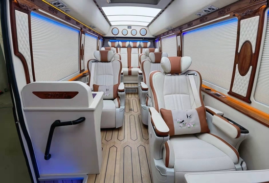 丰田考斯特11座红木总裁版更加注重商务旅行中办公的实用性。真皮航空座椅,电动调节装置可以让您自行调节最舒适的空间距离以及靠背以及脚托的角度,特殊的座椅构造,增加腰部的支撑,宽敞的空间让您的双腿收放自如,忘却旅途的紧迫感,体验如家般的感觉,缓解您在行车旅途中的疲劳。