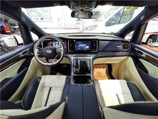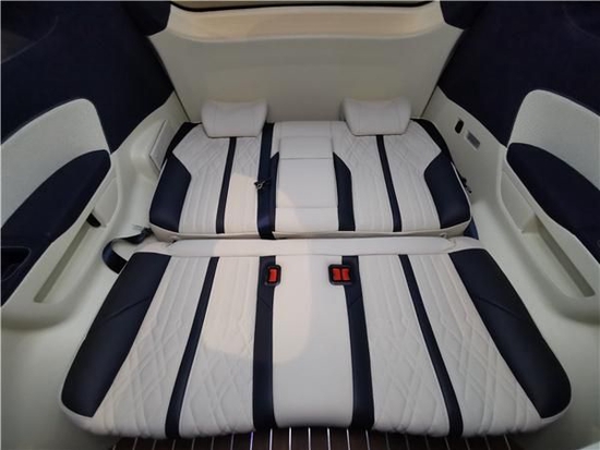 蓝白相间的超细纤维真皮内饰设计极为舒适,极具观赏性,腰线覆以高级麂皮,做工精致,整车隔音降噪,健康舒适的驾驶环境,后舱独立车载电视带影音系统,8.1立体声环绕音响,让您在车内享受影院级影音系统。