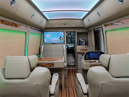 游艇柚木地板,防水防滑。车内还搭载了高效空气净化器,激光消毒器。电动百褶窗帘,很方便,A380空客顶灯、立柱彩灯和各种氛围灯交相辉映。我司二十余年专心为客户打造最舒适,最奢华的理想座驾,以专业的态度赢得良好的口碑,以真诚的服务让客户宾至如归。