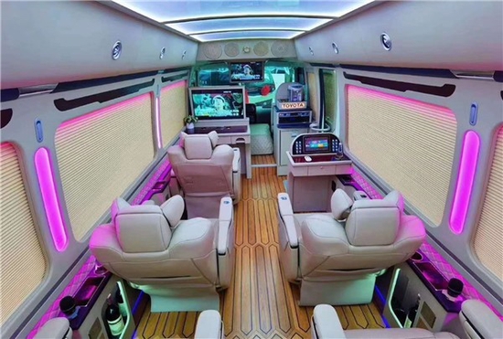丰田考斯特改装商务车,除了座椅的改装以外,车内间隔的添加也是别有一番风味的,间隔的添加,将驾驭席和乘客席分隔而设,一起我们能够在间隔上添加一些精巧的设备,电子时钟,或许显示屏,便利有运用。间隔的效果最主要仍是分离了司机和乘客,既能够给司机一个安静的驾驭环境,相同也为乘驾人员供给了愈加静寂的搭车空间。