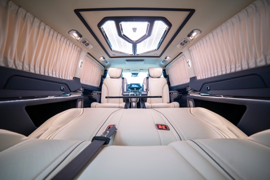 这款奔驰威霆7座商务车的车窗还特意设计隐私窗帘,给老板一个更安全私密的环境,后备厢空间也格外宽敞。
