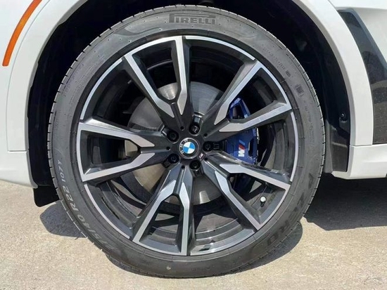 22寸V型轮毂,选装M运动包才有的蓝色卡钳。