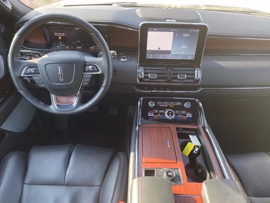 21款林肯领航员的内饰非常奢华,多功能方向盘,中控台的造型与宽大的车身相呼应,新车全部真皮包裹座椅,内饰采用桃木搭配设计,高贵典雅,加高加大的车身除了增加内部空间外,还给人营造一种尊贵典雅的感觉。最新林肯领航员新车采用了2+2+3的座椅布局,第二排采用了两个独立座椅,座椅内侧均配有扶手,舒适度超强。