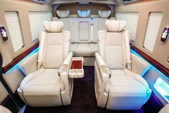 21款中东海狮九座商务(改装案例参考) 改装配置: 豪华航空座椅,电动沙发床,主副电动座椅,整车桃木饰件,天空之境顶灯,氛围灯,桃木方向盘,大屏导航,360环影,触摸屏控制,整车内饰纳帕皮双层包覆,中央扶手包覆带冰箱,麂皮绒窗帘,铝合金迎宾踏板,25寸电视屏幕,电动中门,印花地板,海狮包围,大灯总成,整车镀铬,靠背桌板,整车隔音,轮毂
