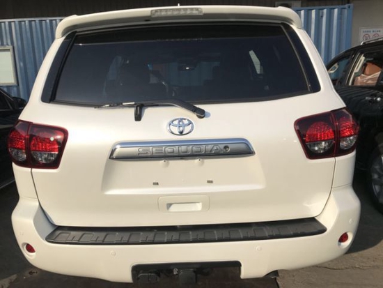 丰田红杉5700的前脸设计同样具有明显的美式风格,宽大的进气格栅几乎占据了整个车头部,与边角略微上扬的车灯组成了似牛头的图案,使得红杉的车身侧面充满了威慑力和霸气。