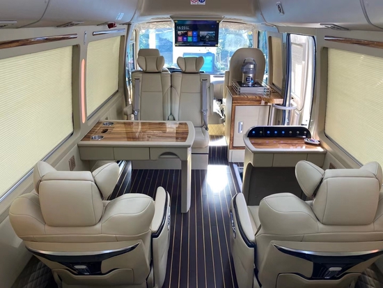 丰田考斯特改装商务车改装座椅是重要的一个部分,但是这并不代表着是全部。丰田考斯特改装在内饰的其他设计上更是给人以新奇之感。丰田考斯特改装在地毯的设计上可以又不重的方案,或者是鲜艳的红色通道地毯,或者是端庄的蓝色地毯,亦或者是整体尊贵的游艇木地板。丰田考斯特改装在我们脚下的每一步都打造出一种高贵的衬托。