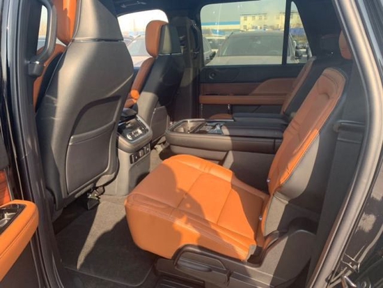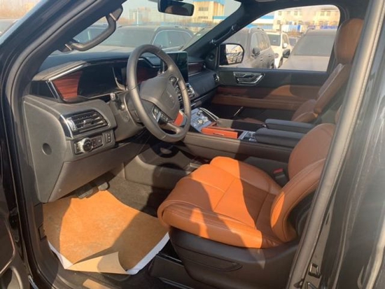 2021款林肯领航员的内饰非常奢华,多功能方向盘,中控台的造型与宽大的车身相呼应,新车全部真皮包裹座椅,内饰采用桃木搭配设计,高贵典雅,加高加大的车身除了增加内部空间外,还给人营造一种尊贵典雅的感觉。最新林肯领航员新车采用了2+2+3的座椅布局,第二排采用了两个独立座椅,座椅内侧均配有扶手,舒适度超强。
