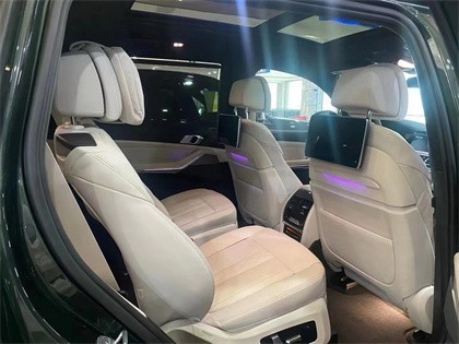 新款宝马X7座椅采用2+2+2六座布局以及2+3+2七座布局非常合理,此种设计使得整个内饰空间变得宽敞许多。宝马X7在将第二排的腿部空间调整至两拳后,第三排可以获得一拳的腿部空间,虽然头部空间比较有限,不能与MPV车型相提并论,但宝马X7的第三排也并不像一般SUV车型那样会有一种压抑感,而且视野很好,内部空间兼具强大功能与豪华尊崇感,给予乘坐以畅然享受。